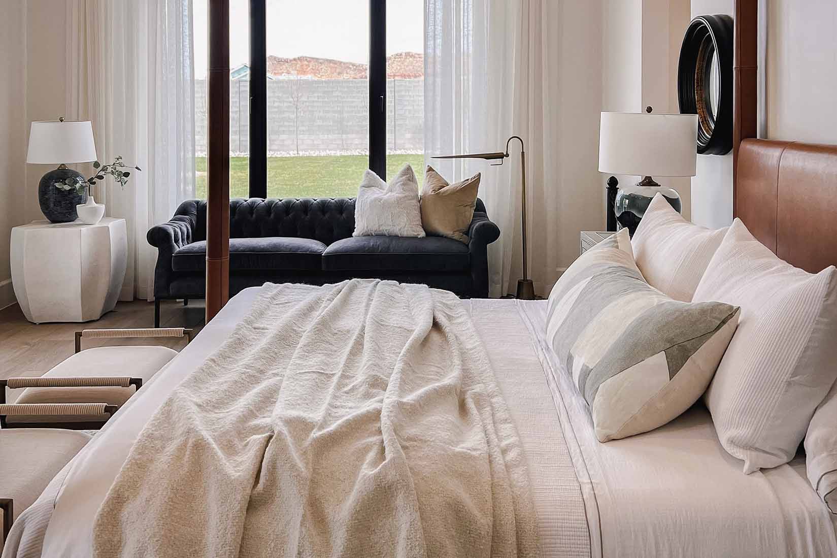 The south-facing aspect affords unimpeded views of the Alps. Measuring 42 square metres, with traditional Alpine woods, warm fireplaces, and natural-stone touches.